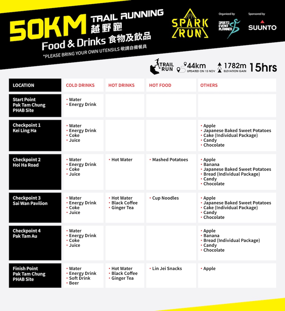 - Please bring along the cutlery set (Applicable to 50km & 25km runners) and silicon cup we give