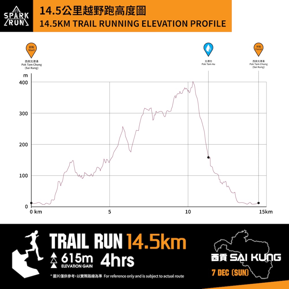 *各賽程的總距離及總攀升值僅供參考,數值或因應不同的測量裝置及電子地圖而出現差異,敬請留意。
