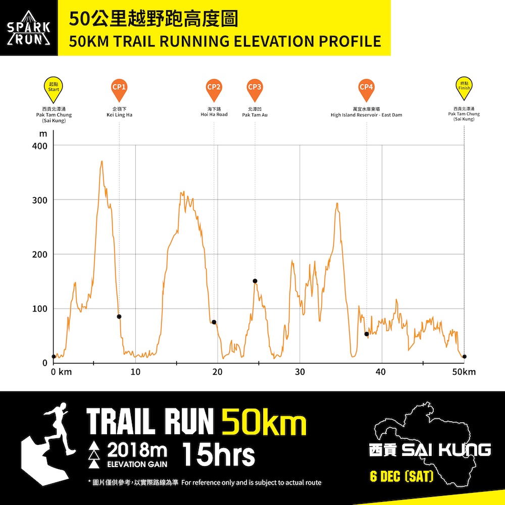 注意: 由於受較早前颱風導致的山泥傾瀉影影,50公里及14.5公里的路線已更改。